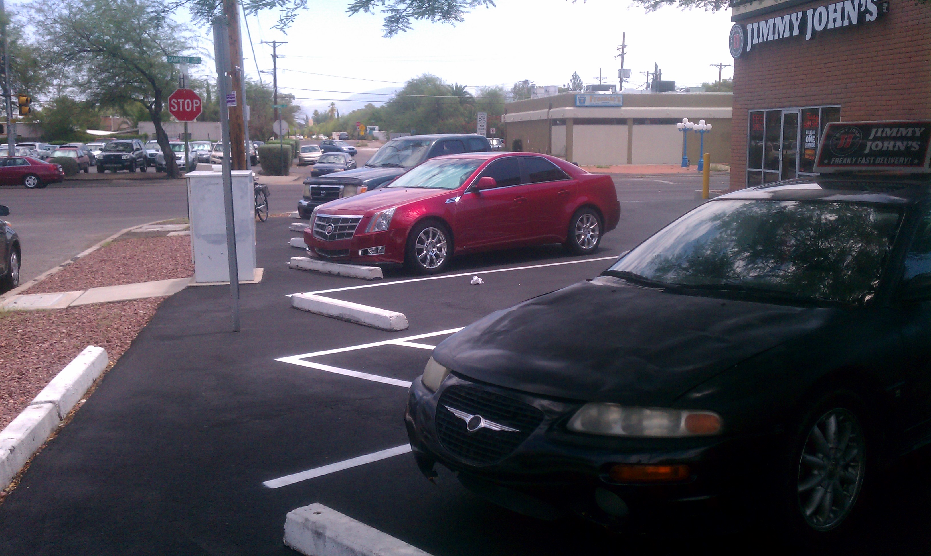 In any case, it seems Jimmy John’s is a tenant and the use of the pad it rents didn’t change. Would it be more appropriate and effective to take up valid compliance concerns, lack of enforcement concerns (if valid) with the actual owners of the property? With the City? Indeed, for all we know, Jimmy John’s is not allowed by the rental agreement to install its own bike racks.