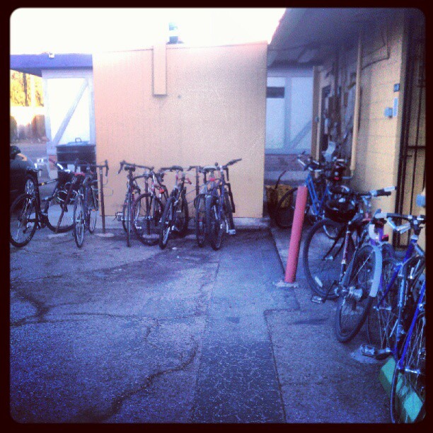 Last week, my wife and I decided to ride over to Rocco’s Little Chicago on Broadway for dinner. Our surprise came when we arrived and the bike racks were completely full. That may not be so unusual for many restaurants outside of the UA/Downtown core that have only one rack (if any), but Rocco’s is really bike-friendly with space for 14 bikes – we ultimately locked up to the gas meter.