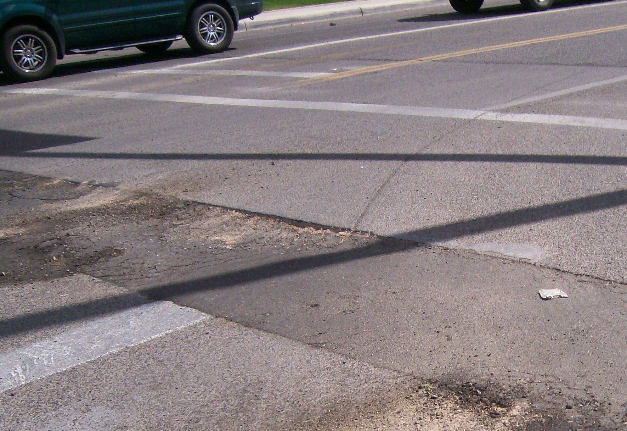 Recent utility work on Ft. Lowell Road, which is part of a City of Tucson Street Lighting and Sidewalk improvement project, left this ugly patch job with a pinch-flat inducing edge smack in the southbound bike lane on Mountain Avenue.
