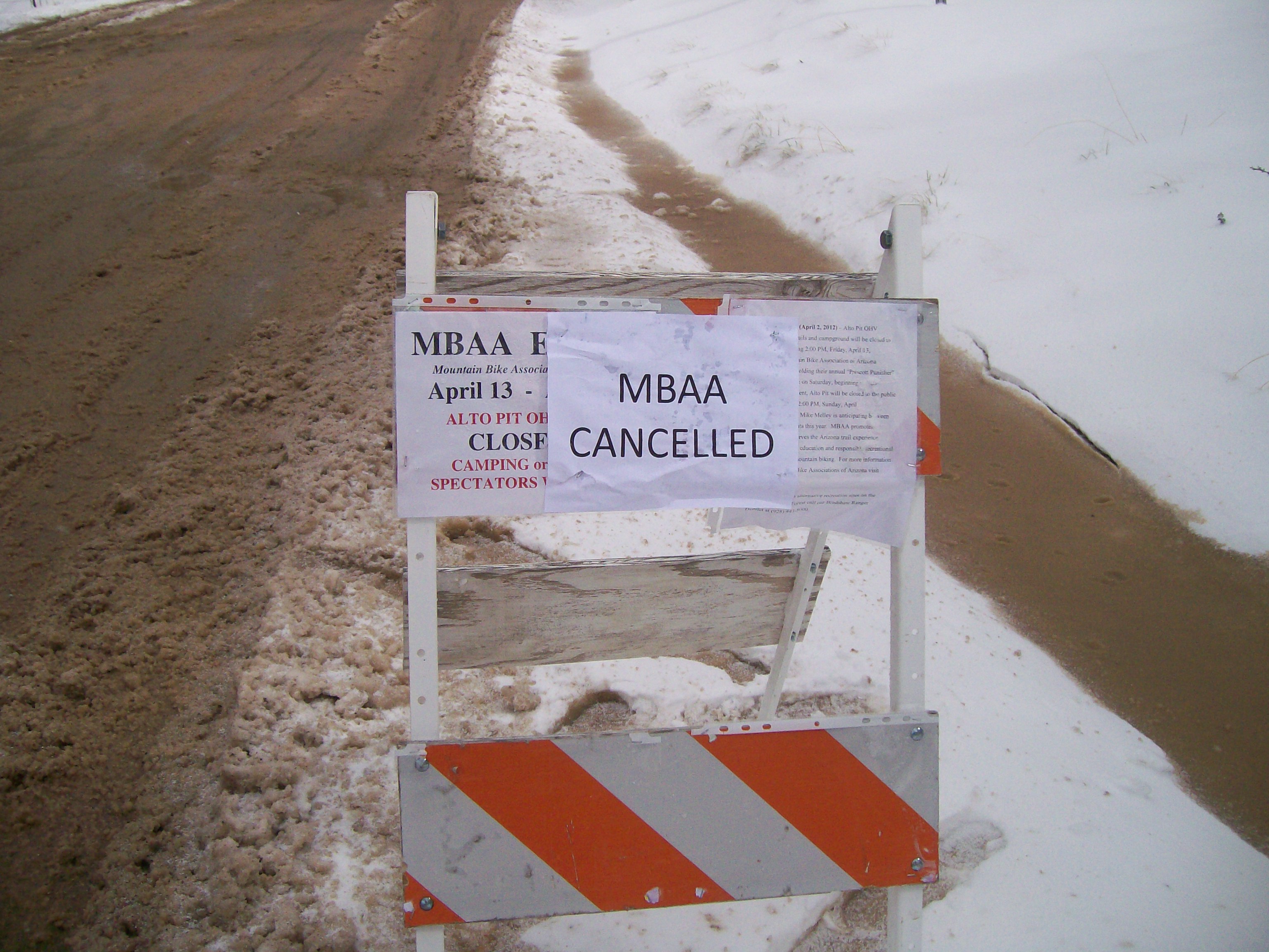 According to the MBAA website, organizers are looking at the possibility of re-scheduling the race. However with the Whiskey 50 Off-road race to be held in Prescott in just two weeks, and the last MBAA race in Flagstaff in one month, they will be hard pressed to find time.