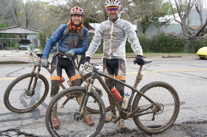 Some hardy Tucson riders – TJ Woodruff, Charlie Roach, and John and Nora Beck – decided the day should not be wasted and braved snow and mud to pre-ride the Skull Valley climb section of the Whiskey 50 course.